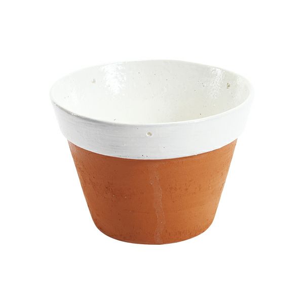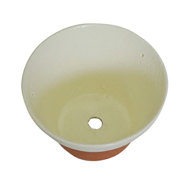 ポット上部とポット下部に白くペイントされたラウンドポットです。6号サイズの植物の鉢におすすめです。