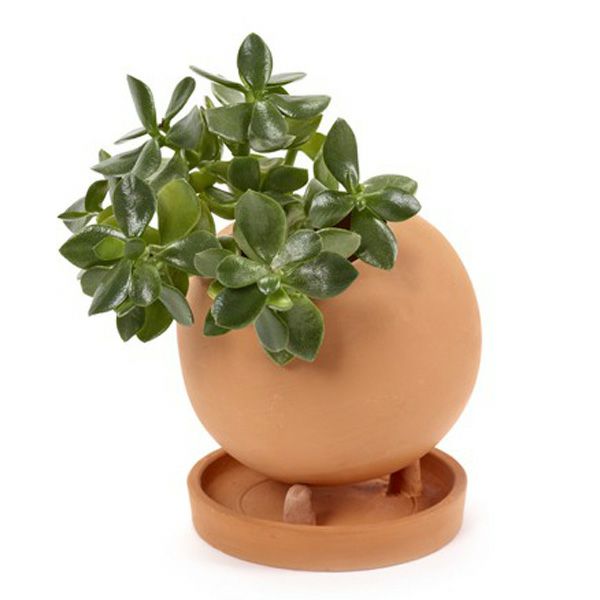 テラコッタ素材のソーサー付きのポット。オレンジが強い明るめのアースカラーは、植物との相性抜群です。