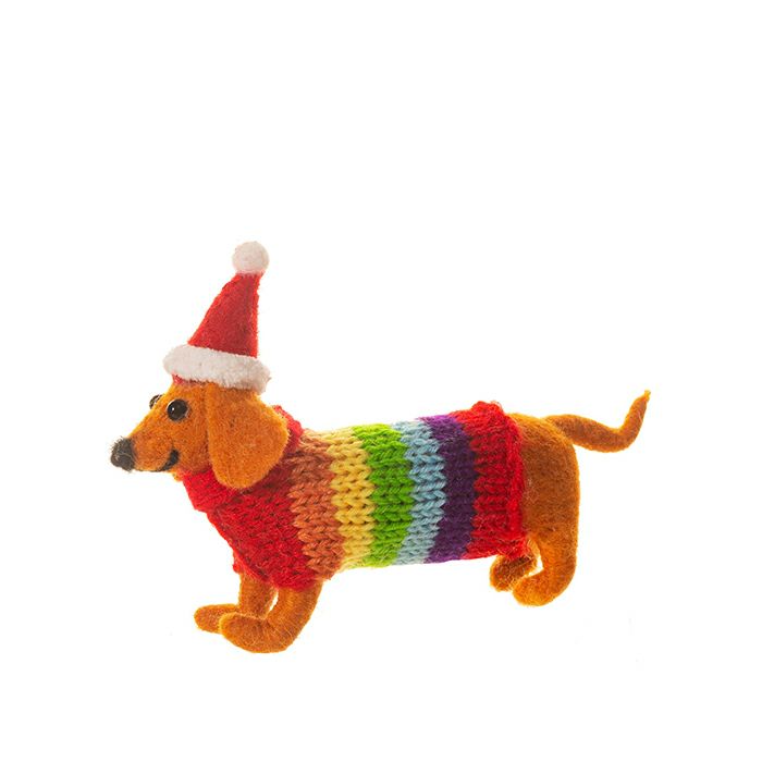 虹色の洋服がかわいいドッグモチーフオーナメント。