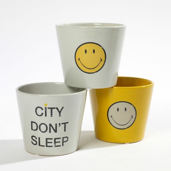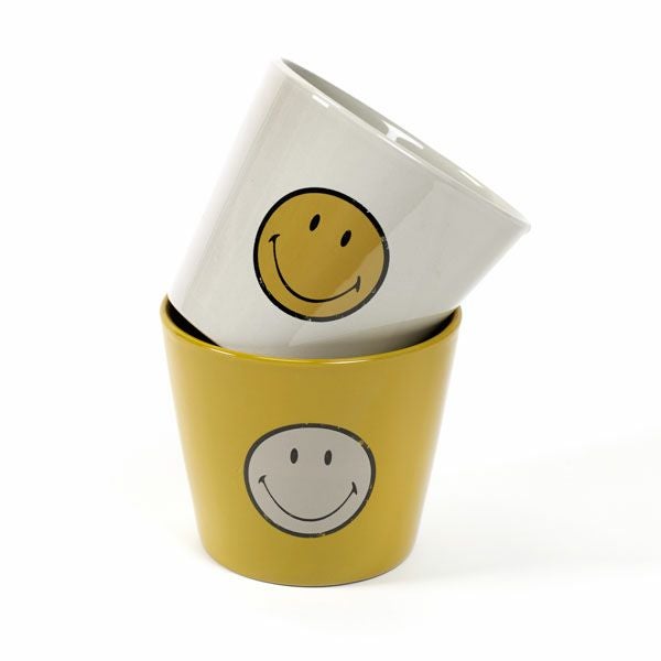 どこか懐かしい雰囲気のある、スマイリーポット。鉢底穴があいていないため、ペン立てや小物入れなど様々な用途でご使用いただけます。