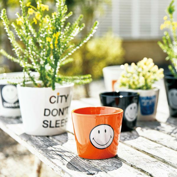 どこか懐かしい雰囲気のある、スマイリーポット。鉢底穴があいていないため、ペン立てや小物入れなど様々な用途でご使用いただけます。