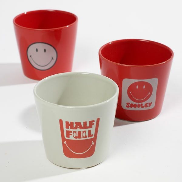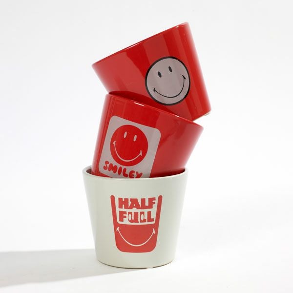 どこか懐かしい雰囲気のある、スマイリーポット。鉢底穴があいていないため、ペン立てや小物入れなど様々な用途でご使用いただけます。