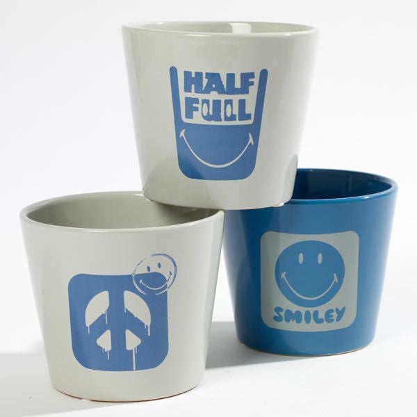 どこか懐かしい雰囲気のある、スマイリーポット。鉢底穴があいていないため、ペン立てや小物入れなど様々な用途でご使用いただけます。