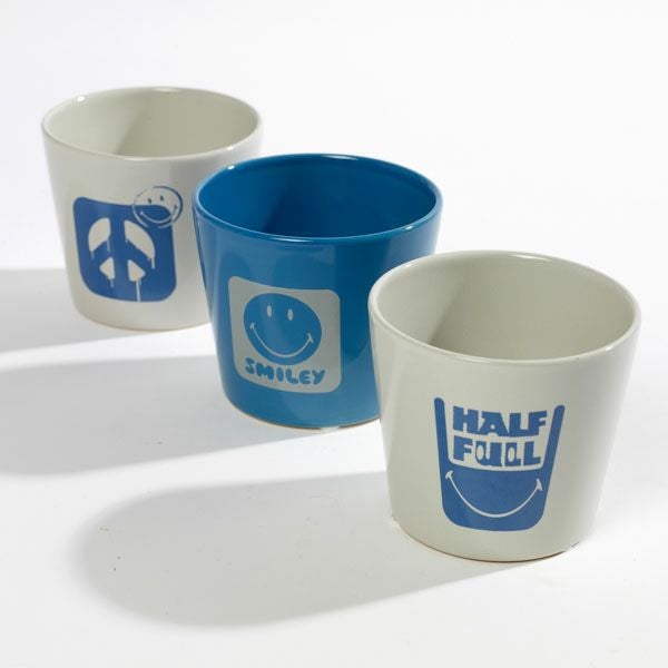 どこか懐かしい雰囲気のある、スマイリーポット。鉢底穴があいていないため、ペン立てや小物入れなど様々な用途でご使用いただけます。
