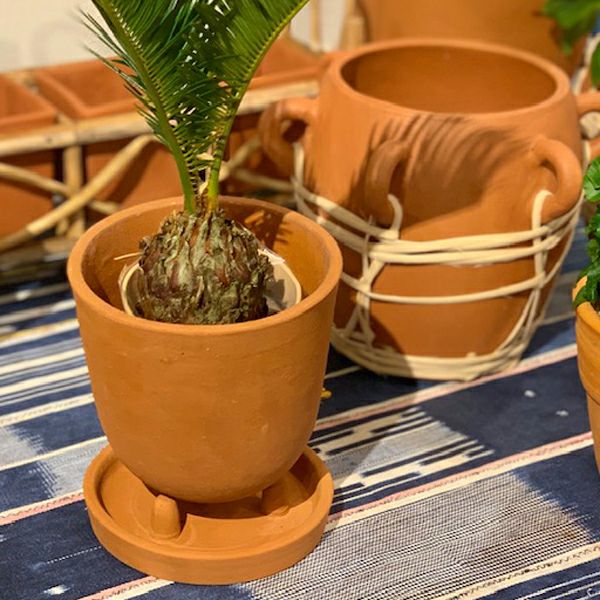 テラコッタ素材のソーサー付きのポット。オレンジが強い明るめのアースカラーは、植物との相性抜群です。サイズはΦ15.5、Φ25の2種類です。