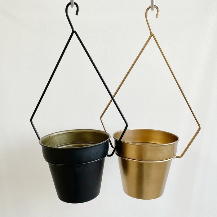 細く繊細なフレームのハンギングポットです。