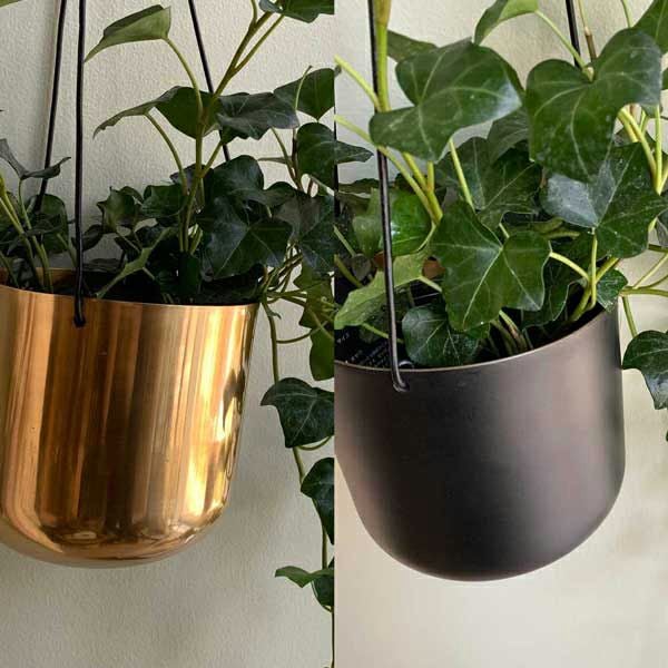 高級感がある鉢カバー。スリムな佇まいで、とても大人っぽいです。背の低い植物も、吊るすことによって視線の高さになり、存在感が増します。ただ並べて置くよりもお部屋に立体感が出て、ぐんとオシャレに。壁や天井から吊るせば、限られたスペースでもおしゃれに植物を楽しめますよ。サイズバリエーションはΦ9、Φ11.5、Φ14.5cmの3種類です。