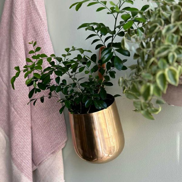 見慣れた観葉植物も、鉢ホルダーを使って目線の高さにすると、存在感が増しおしゃれなインテリアに。