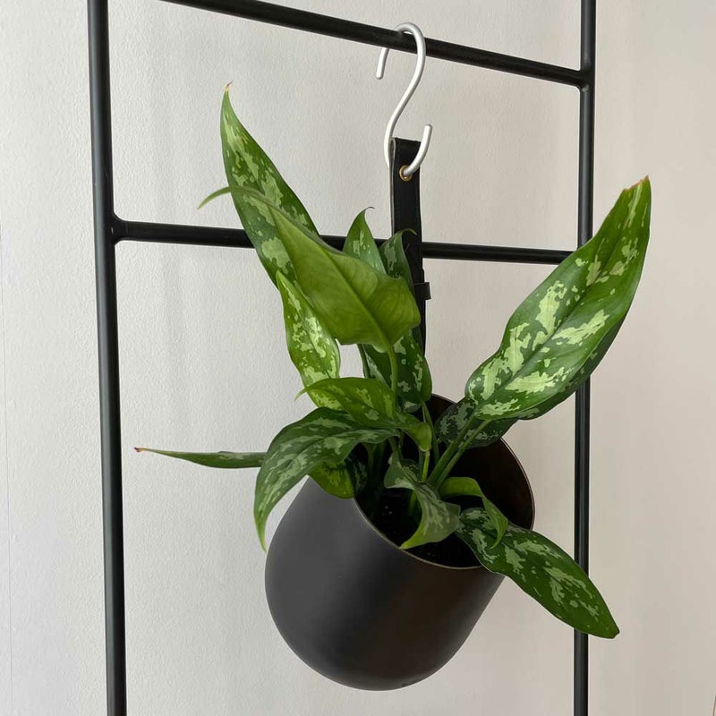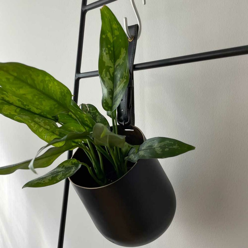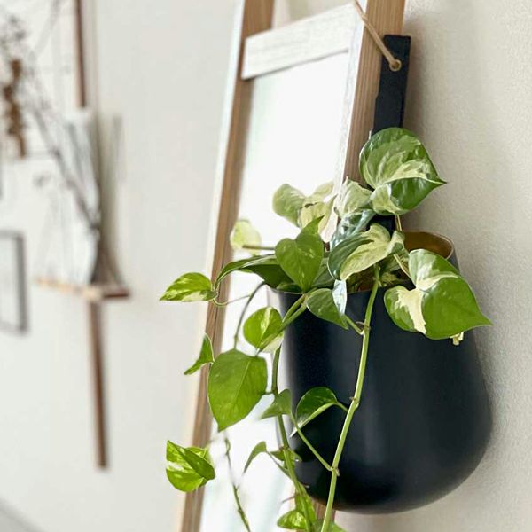 見慣れた観葉植物も、鉢ホルダーを使って目線の高さにすると、存在感が増しおしゃれなインテリアに。
