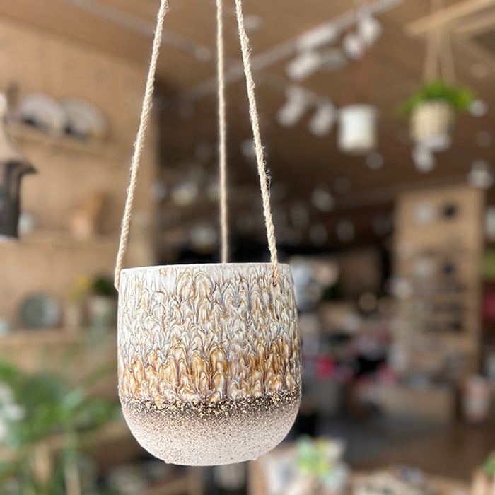 ニュアンスデザインが特徴的なハンギングポット背の低い植物も、吊るすことによって視線の高さになり、存在感が増します。ただ並べて置くよりもお部屋に立体感が出て、ぐんとおしゃれに。
