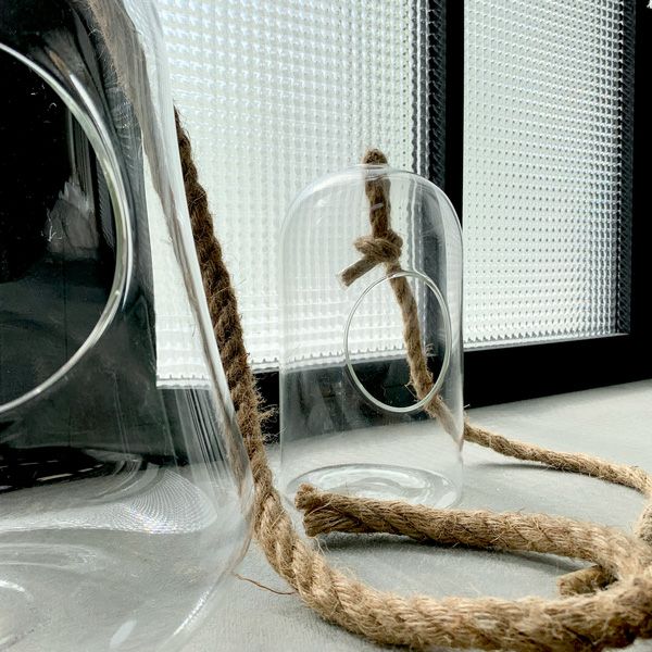 丸いフォルムのハンギングポット。ガラス素材でグリーンがよく映えます。リビングや窓辺などに飾ってお部屋のアクセントに。背の低い植物も、吊るすことによって視線の高さになり存在感が増します。吊るすので場所をとらず、限られたスペースでもおしゃれに植物を楽しむことができます。