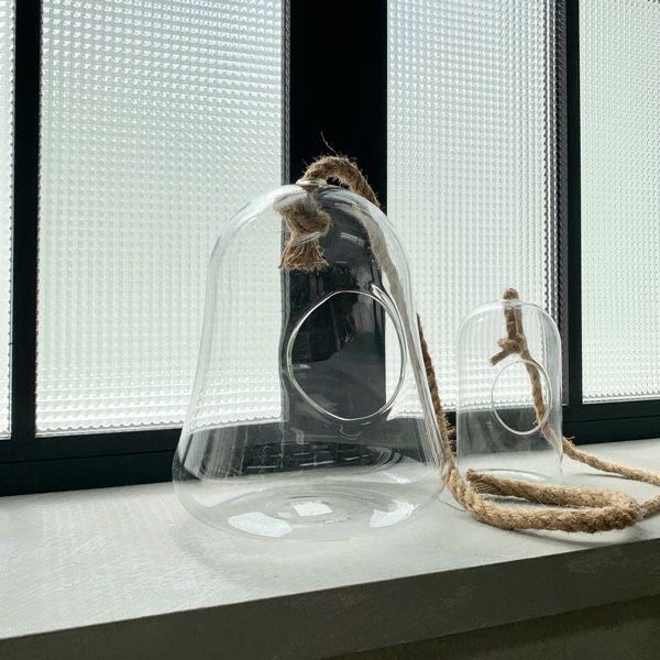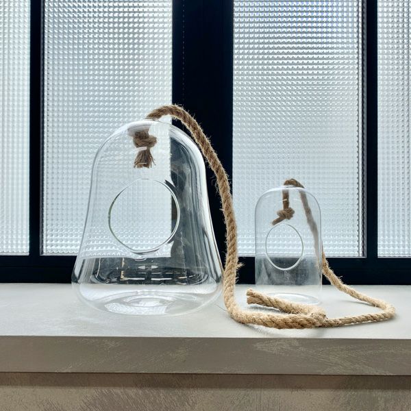 丸いフォルムのハンギングポット。ガラス素材でグリーンがよく映えます。リビングや窓辺などに飾ってお部屋のアクセントに。背の低い植物も、吊るすことによって視線の高さになり存在感が増します。吊るすので場所をとらず、限られたスペースでもおしゃれに植物を楽しむことができます。