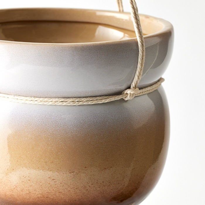 寒色と暖色の組合せが個性的なハンギングポットです。