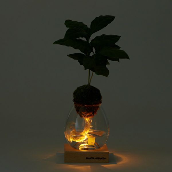 アルコールランプのようなシルエットで、キャンドルの代わりにテーブルや棚の上に置いて楽しめるトーチ。付属の吸水ロープから植物が必要なお水を吸い上げてくれます。ガラス容器の中の水を清潔に保ってあげることで、植物は生育します。木製の台座に内蔵されたLED揺らぎライトが、キャンドルのようなあかりを灯します。ボタン電池式のため、コードを気にせず置きたい場所に置いて楽しむことができます。