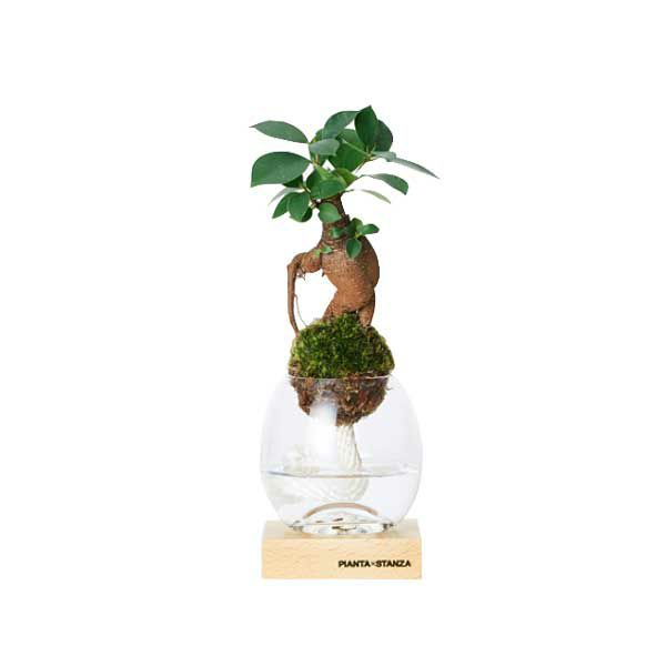 ヨガのポーズのような、株ごとに違う姿をもつガジュマル。葉には適度に霧吹きするのがおすすめです。