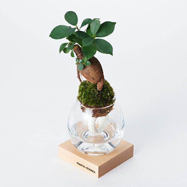 仕様 | LED内蔵木製台座(ウレタン塗装)、ガラスタンク、給水ロープ付こけ玉
