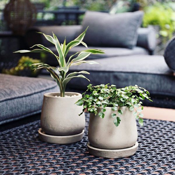 ナチュラルやモダン、和テイスト、アジアンなどどのシーンにもしっくり取り入れやすいデザインかつ明るすぎず暗すぎないグレーカラーに仕上げられています。手のひらサイズの小鉢から庭園・バルコニーに使える大鉢まで、複数のサイズバリエーションをご用意しています。モルタルとファイバーで仕上げたコンクリートポットの底には、すべてのサイズに鉢底穴がございます。お手入れや管理の仕方により植え込んでも鉢カバーとしてもご利用していただきやすいポットです。