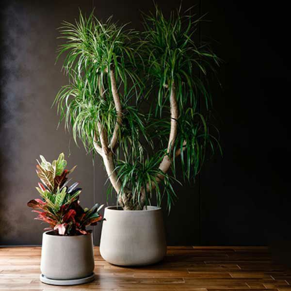 ナチュラルやモダン、和テイスト、アジアンなどどのシーンにもしっくり取り入れやすいデザインかつ明るすぎず暗すぎないグレーカラーに仕上げられています。手のひらサイズの小鉢から庭園・バルコニーに使える大鉢まで、複数のサイズバリエーションをご用意しています。モルタルとファイバーで仕上げたコンクリートポットの底には、すべてのサイズに鉢底穴がございます。お手入れや管理の仕方により植え込んでも鉢カバーとしてもご利用していただきやすいポットです。