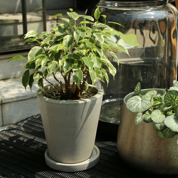 ナチュラルやモダン、和テイスト、アジアンなどどのシーンにもしっくり取り入れやすいデザインかつ明るすぎず暗すぎないグレーカラーに仕上げられています。手のひらサイズの小鉢から庭園・バルコニーに使える大鉢まで、複数のサイズバリエーションをご用意しています。モルタルとファイバーで仕上げたコンクリートポットの底には、すべてのサイズに鉢底穴がございます。お手入れや管理の仕方により植え込んでも鉢カバーとしてもご利用していただきやすいポットです。