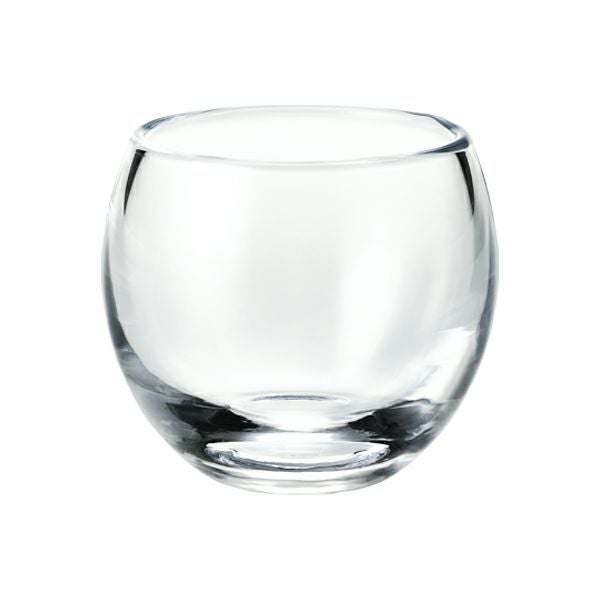 丸みが印象的なディテールのグラス。フラワーベースとして、またオーナメントやキャンディなどをいれて飾ればインテリアのアクセントに。