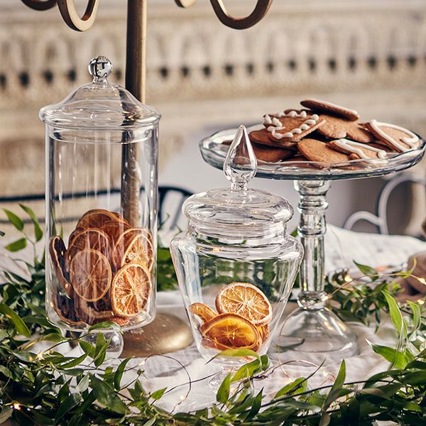 アンティークな雰囲気がある蓋付きガラスポット。