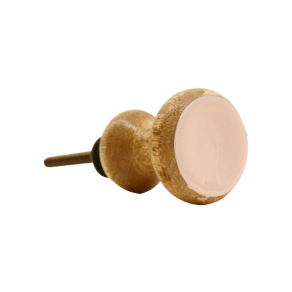 ナチュラルテイストのお部屋のアクセントカラーにぴったり。正面にエナメル質のツヤツヤ塗装が施されたウッドノブです。天然木で作られているため1点1点の表情が違うのもウッドノブの魅力。指で触れたときにざらざらとした木目の風合いを感じます。