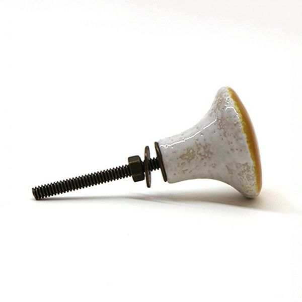 ツヤツヤとした表面の質感が特徴的なセラミック製ノブ。アンティークなデザインで味わい深く、インテリアに馴染みやすいです。