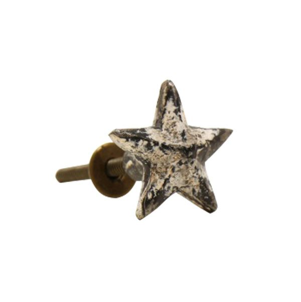 何年も使っていたかのような鈍い輝きが特徴の、メタル素材のノブ。星型のフォルムのノブはやや小さめのデザインです。モノトーンな色味はメタル調のDIYシートを貼った棚にもおすすめです。