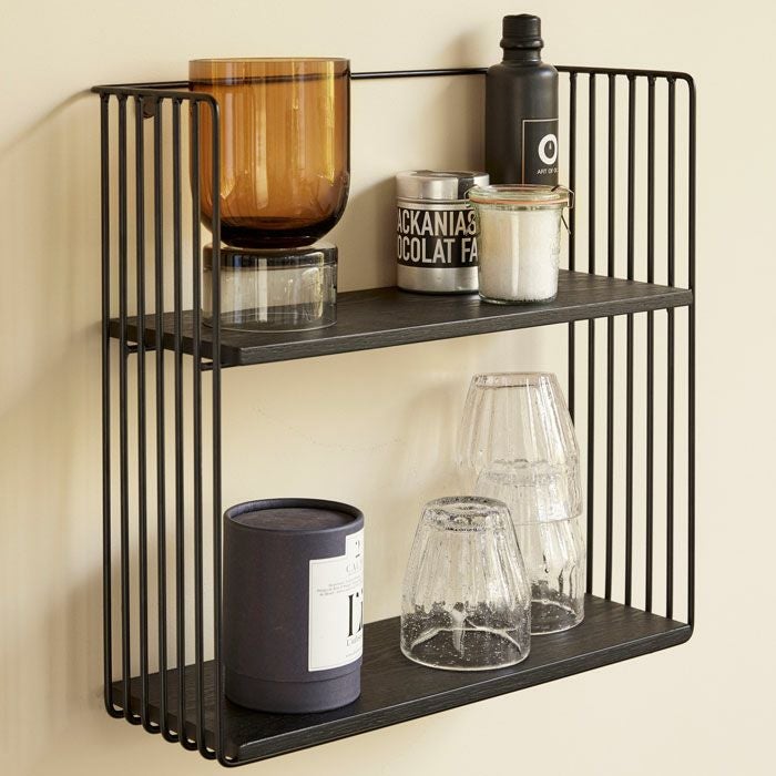 ブラックフレームの2段シェルフ。