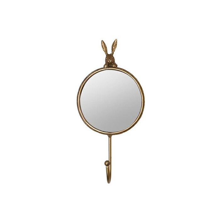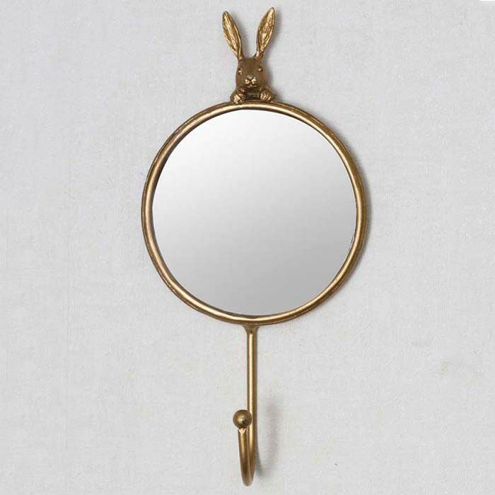うさぎのモチーフがかわいいゴールド色のフック付きミラーです。
