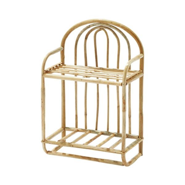 堅くて強い特徴のラタン素材で作られた2段のシェルフ。ナチュラルでシンプルなシェルフは、どんなインテリアにも調和します。プランターを置いてお庭のアレンジをしたり、室内で収納棚としてなど様々にお使いいただけます。また、季節によって涼しげに見えたり、暖かさを感じたり、不思議と印象が変わります。イメージするインテリアを叶えてくれるアイテムです。