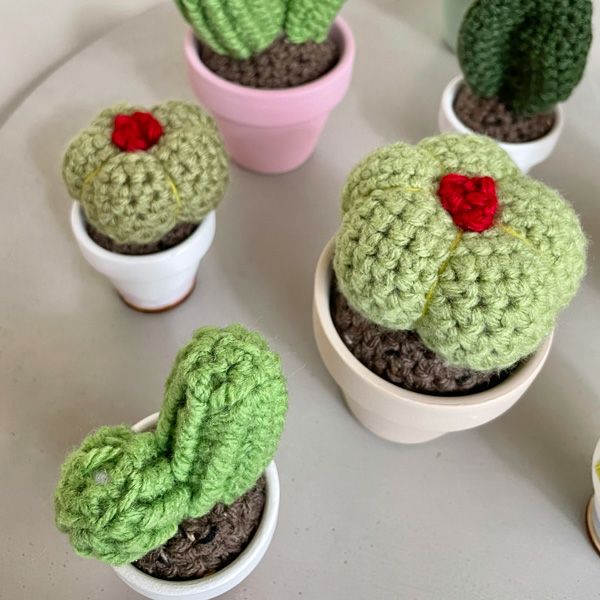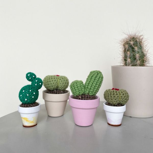 ハンドメイドならではの温かみを感じる、かぎ針編みのサボテン。通常の植物のように水やりをする必要が無く、手入れ不要で色鮮やかさが持続します。ギフトにもおすすめです。