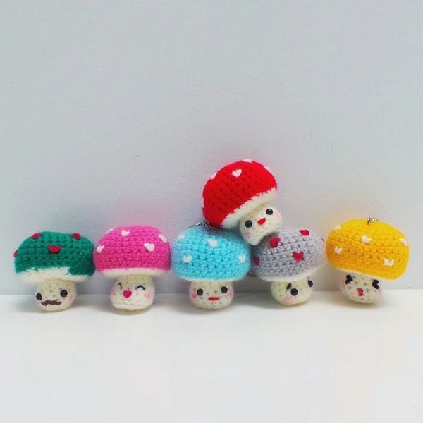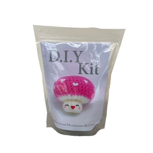 キノコの編みぐるみが作れる、編み物キット。必要な道具がセットになっています。 編み物がお好きな方や、初心者の方にも。