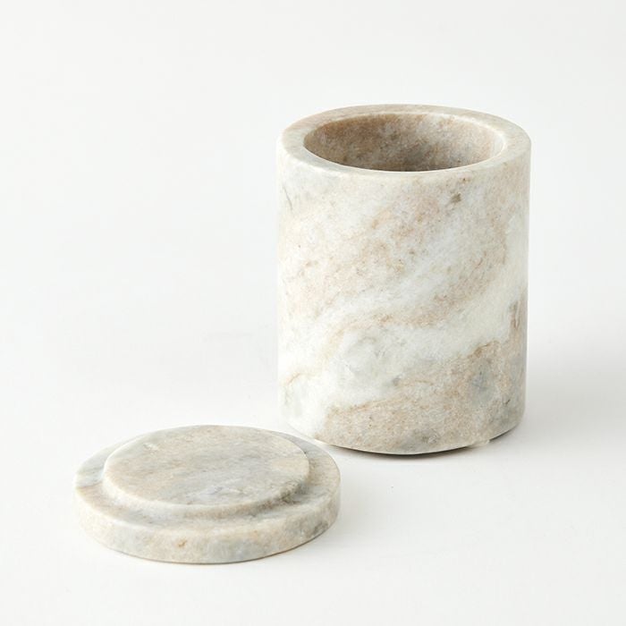 大理石の蓋付きのコットンボックスです。小物入れとしてもお使いいただけます。