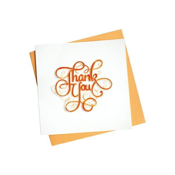 美しい飾り文字で描かれた「Thank You」のメッセージが印象的なグリーティングカード。デザインとコーディネートされた色の封筒が付属しており、二つ折りのカードの内側は白無地でメッセージが書き込めます。大切な想いを込めて、美しいカードを贈りましょう。