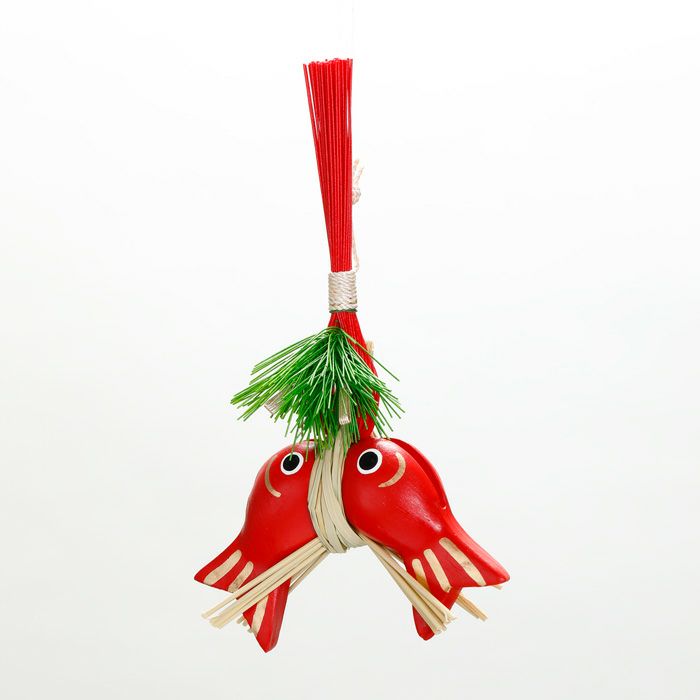 鯛のモチーフの床飾りは、「めでたい」という語呂合わせ、長寿、そして「一つのことを全うする」という縁起の良い意味が込められたもの。