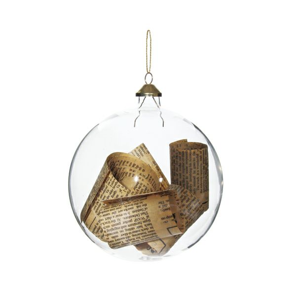 毎年人気のボール型のガラスオーナメントです。アンティークな雰囲気のくるくると丸まった紙が入っておりツリーのグリーンに良く映えます。モダンで大人っぽいデザインで華やかなクリスマスを演出します。