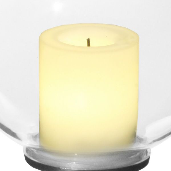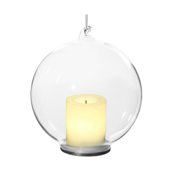 小さなキャンドルを閉じ込めたガラスオーナメント。
