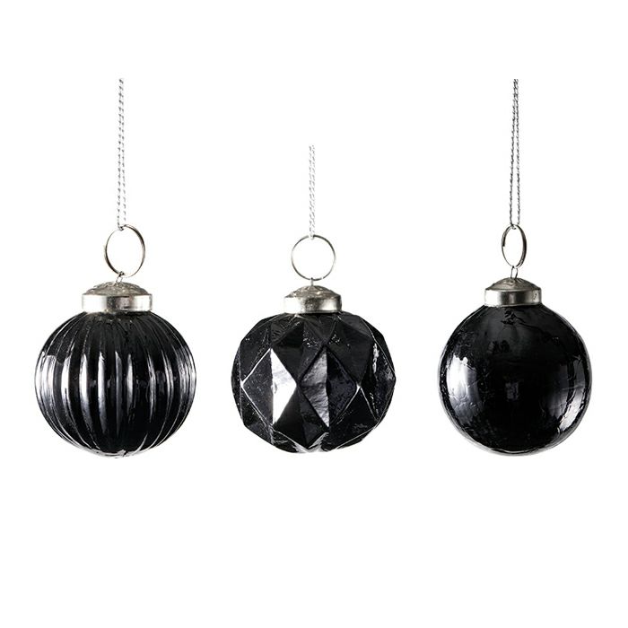 デザインの異なる3種類の組合せが美しいブラックカラーのガラスボールオーナメントです。