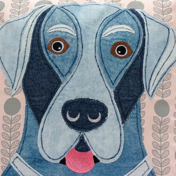 色の異なるデニムの生地でパッチワークされたワンちゃん。