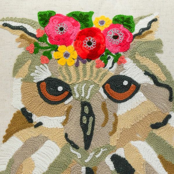 ぱっちりした瞳とカラフルな頭のお花がキュートなふくろう。