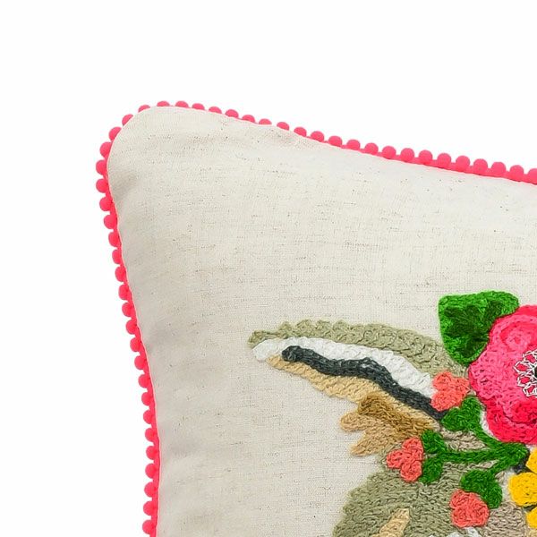 クッションの端にはピンクのポンポンがあしらわれたデザインです。
