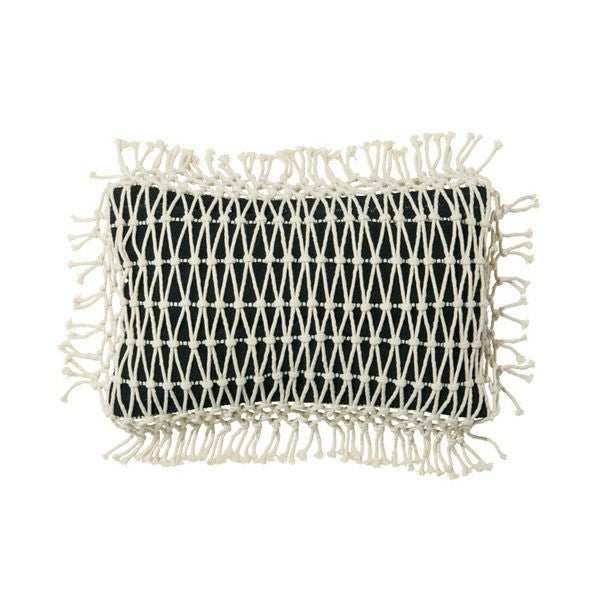 マクラメ編みやフリンジなど、個性豊かな網目が楽しいクッションです。