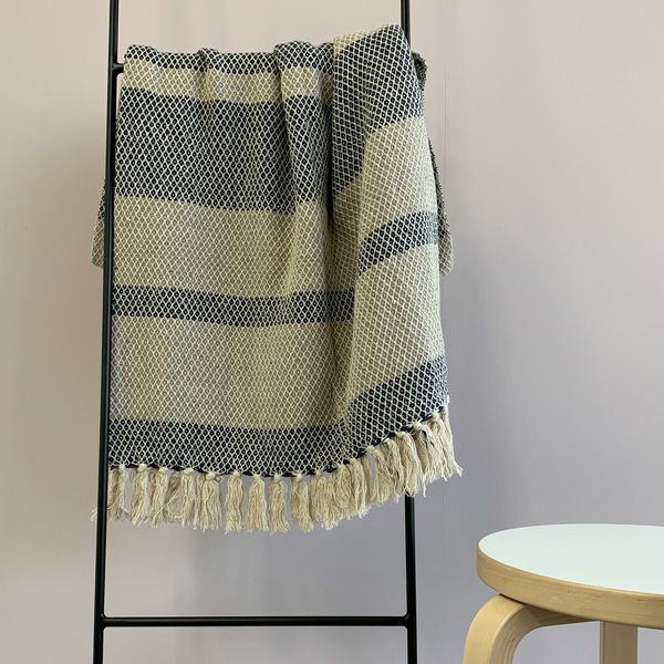 ブランケットよりも薄く、大判なストールのような、コットンスローです。130×160cmのゆったりサイズなので、ひざ掛けとしてはもちろん、肩からすっぽり体全体を包んだり、タオルケットやベッドメイキングのアクセントなど、マルチに使えますよ。 ちょっと肌寒いなと思ったとき、朝起きてちょっと暖まりたいなと思ったとき、とっても便利です。軽いので、さっと使える手軽さも魅力です。家族や自分がいつでも手にとれるように、ソファーや椅子に掛けておいたり、車に常備しておいても。北欧ブランドらしいやわらかなカラーで、インテリアにすっと溶け込みます。コットンスローを、さりげなく部屋の中に置いておく生活、オススメです。