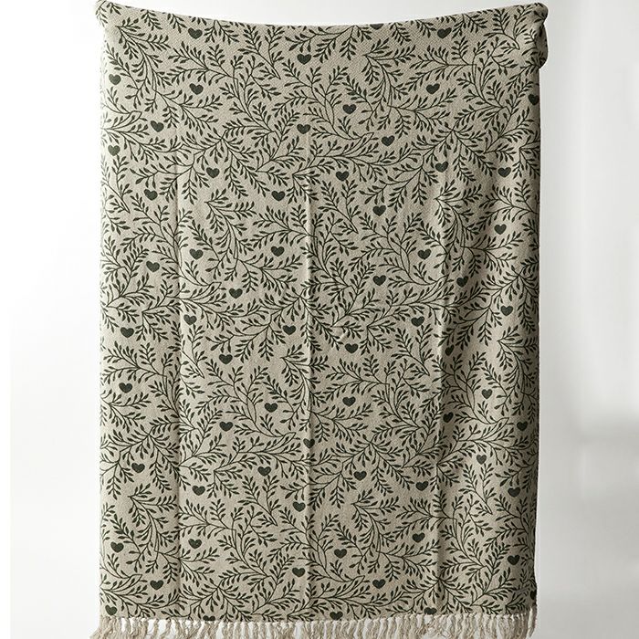 落ち着いた色合いのボタニカル柄ブランケット。