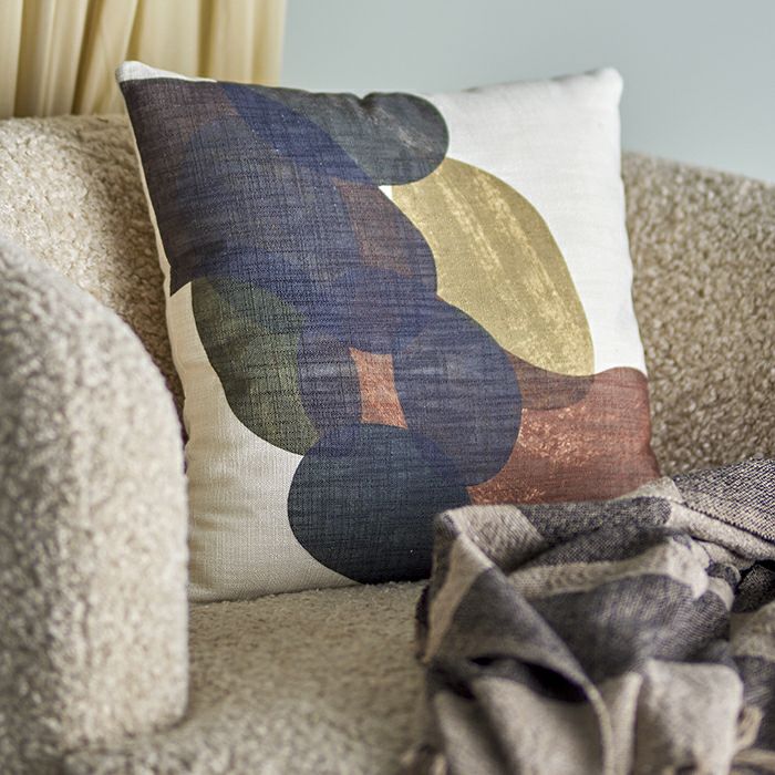 緑、黄、赤、青の色合いで描かれた暖かみのある模様が、リビングルームや寝室に心地よさをプラスしてくれます。