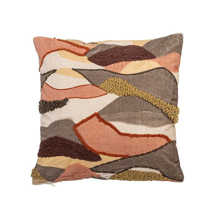 プリント、刺繍、タフティングなどの様々な組み合わせが目を引きます。