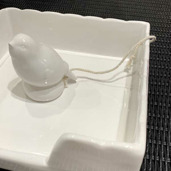 ペーパーナプキンを使いやすく、おしゃれに収納できるナプキンホルダー。17cm角のナプキンが収納できます。小鳥モチーフの飾りがしっかりとナプキンをおさえてくれます。