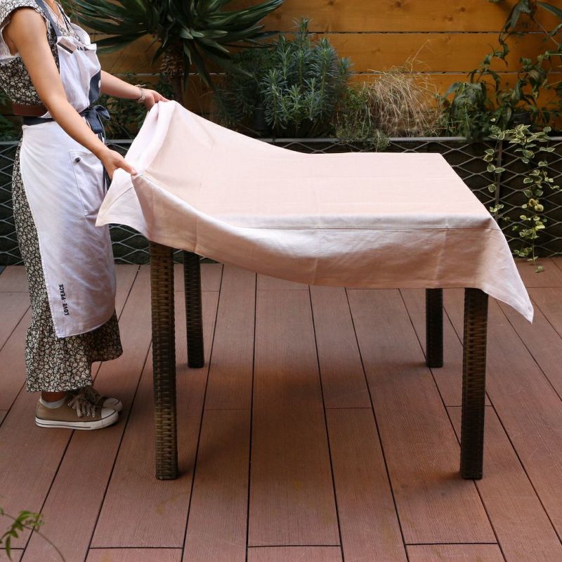 落ち着きのあるグレイッシュトーンが特徴的な2トーンのテーブルクロス。リネン100%のテーブルクロスは洗うたびにしなやかに柔らかく変化していき、独自の風合いを増していきます。お手入れ方法を守っていただくことで、永くご愛用いただけます。テーブル面には撥水加工が施されており、室内だけではなくお外でも。大きめサイズなので、ゆったりとテーブルに掛けてお使いください。カラーは全てupstairsのオリジナルカラー。実際にスタッフが海外へ買い付けに行き、サイズやカラーの組み合わせをコーディネートしました。テーブルコーディネート映えする落ち着いた色味は、他では手に入らないアイテムです。こちらの商品はPATIOPETITEサハラ・ダイニング4人掛け(ガラス天板付)にご使用いただけるサイズです。