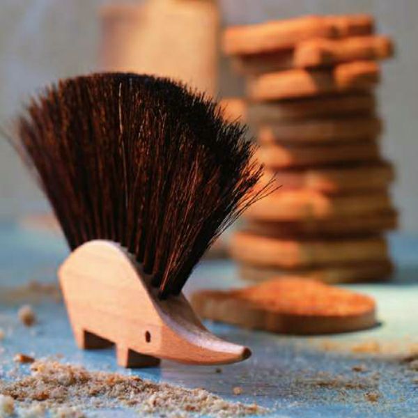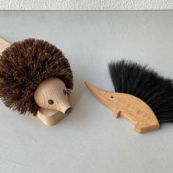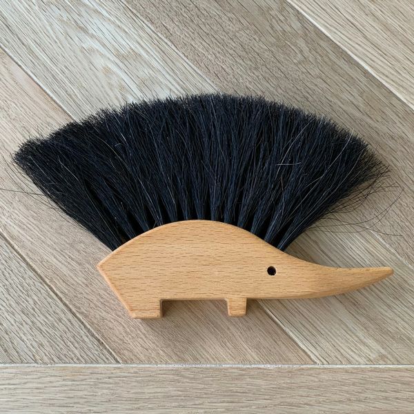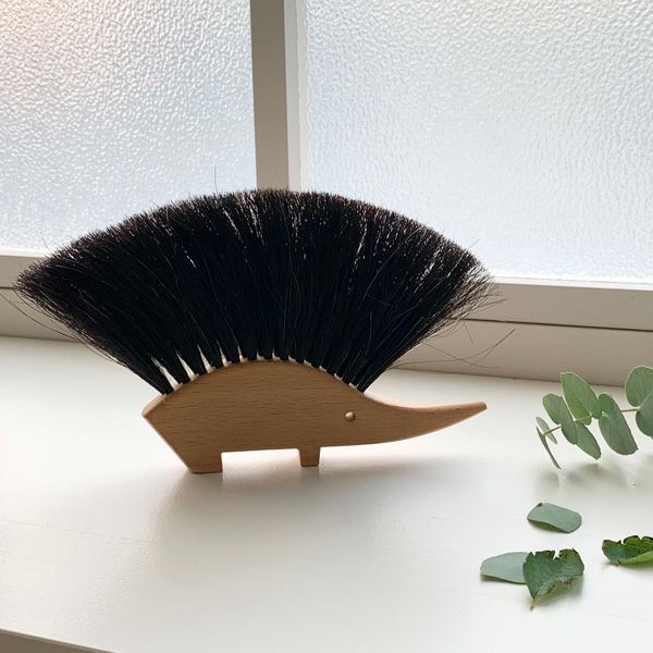 ハリネズミの形をした愛嬌たっぷりのハンドブラシです。 ダイニングテーブルのパンくずやカウンターの埃などを掃き集める、ちょっとした片付けに便利なブラシです。 薄くて軽く、使いやすいサイズ感。自立するので、インテリアにもなります。